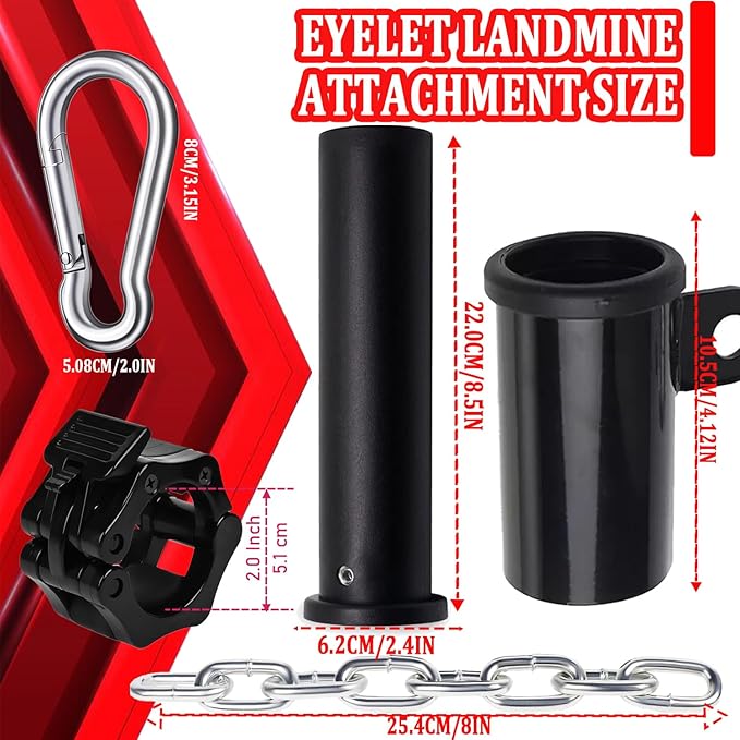 • 🔗Add Versatility - This Portable Landmine Single Eyelet allows you to get creative and add virtually any grip attachment needed, such as a sit-down row handle, single D handle, nylon cable handle, ratt drop bar, shovel grip drop bar, tricot rope or other favorite attachment.