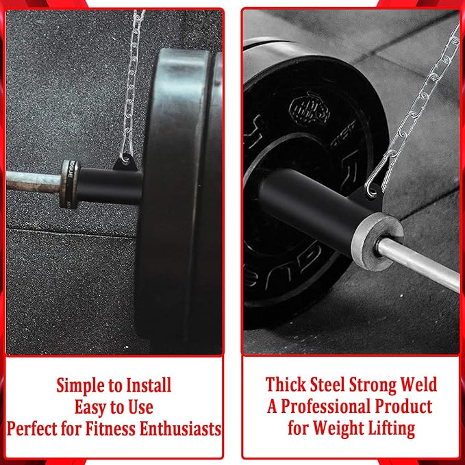 • 💪Features - With eight linked chains, you can change the position of the carabiner on the extension chain or remove the extension chain according to your workout. Built-in plastic ferrules, well reduce the wear and tear between the protective barbell barrel and the barbell bar, while protecting the inner wall and the bottom for the barbell bar, there will be no scratches or paint loss on your favorite fitness equipment.