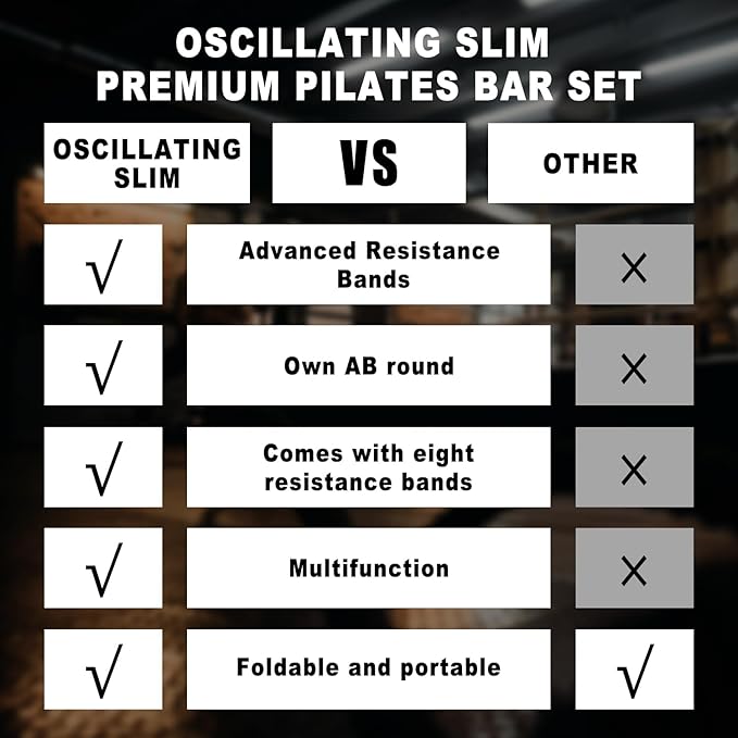 - [Ultimate Pilates Bar System] Unique Pilates equipment completes revolutionary innovation, detachable 3 bars and abdominal rollers are combined to complete regular Pilates training, plus perfect abdominal muscle training, 6 pieces High quality resistance bands, 2 17-inch and 4 12-inch. Sufficient resistance training for people 5'1-6'5 tall