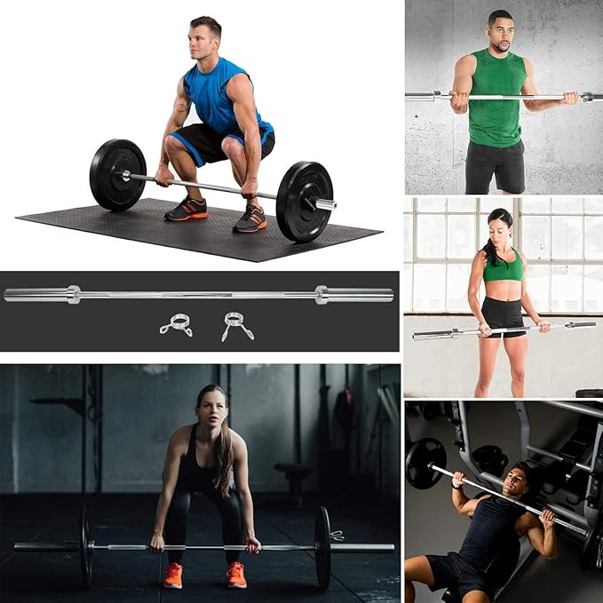 - 🏋️♂️Bar is chrome plated with solid steel construction for repeated use and long lasting. 2” Spring Clips good for reducing pressure on wrists and forearms and for loading all types of 2 inch Olympic barbell plates.