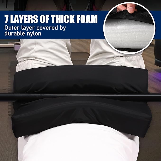 - 【Protect Your Hip Bone】-- One of the main functions of a barbell pad is to keep you comfortable during workouts, especially during hip thrusts. The thick foam cushions the barbell and prevents it from coming into direct contact with the hip bones. Additionally, Barbell pads creates a more even distribution of barbell weight and better protects the pelvis during execution.