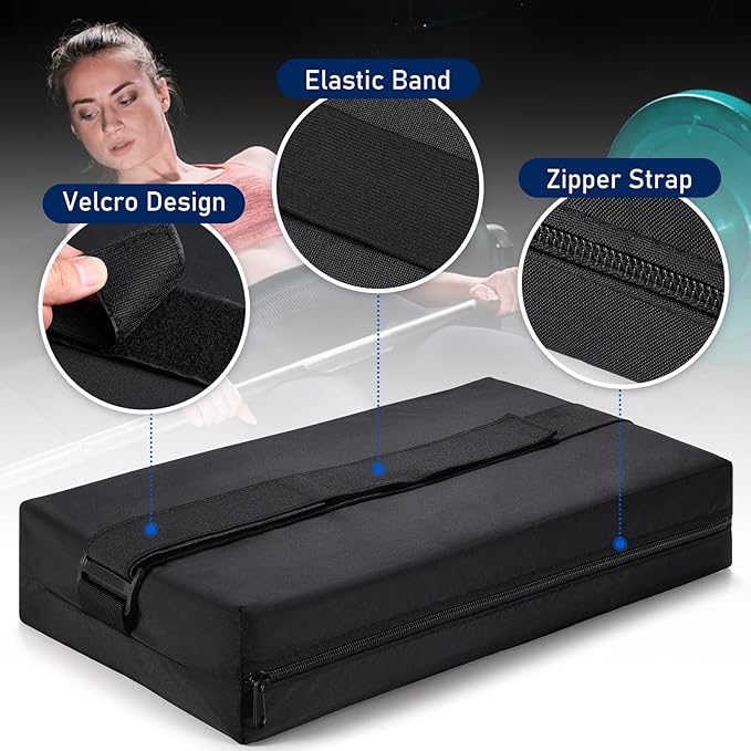 - 【7CM Thickness】-- Measuring 43x25x7cm/17"x9.8"x2.8", this thickened pads are able to cushion the barbell, preventing direct contact between the barbell and the hip bones and better protecting the pelvis while performing the movement. The flexibility of the foam cushion also makes the user more comfortable and stable during push-ups, as the cushion comfortably holds the barbell between the hips and thighs during each repetition of the movement.