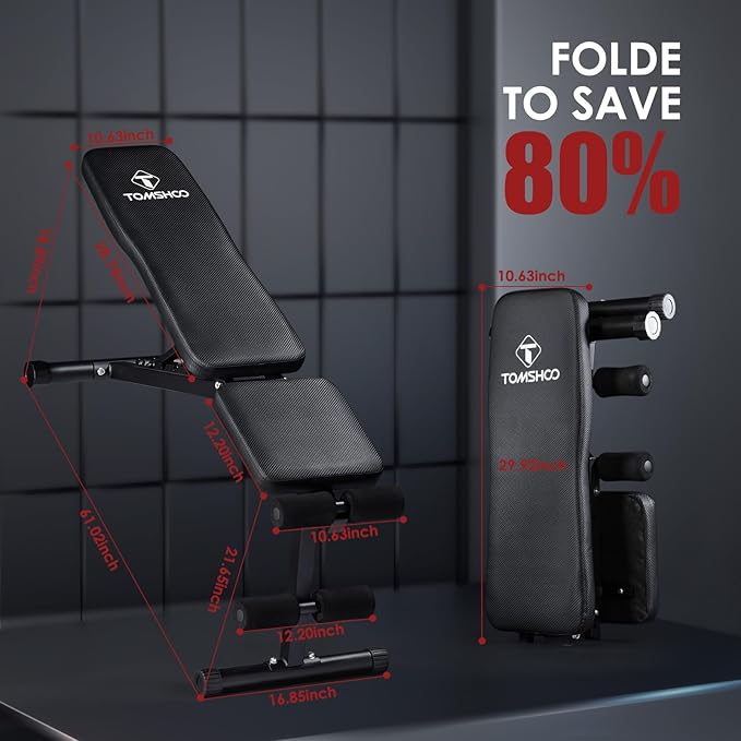 - 【660 Lbs Weight Capacity】 - TOMSHOO training bench is designed with Heavy-Duty Quality Steel & Stable Triangular Structure. Durable and solid dumbbells bench handles up to 660 lbs, which provides stable support for variety of workouts.