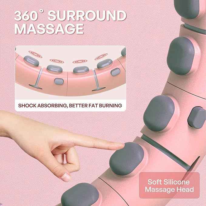 - 【Premium Materials】 The smart weighted exercise hoop is made of hard ABS plastic to prevent equipment aging. The inner massage heads are made of highly elastic soft silicone to protect your skin and provide soothing massage of your abdomen. The upgraded soft silicone massage heads provide 360° abdominal massaging action to tone and tighten your abdomen.