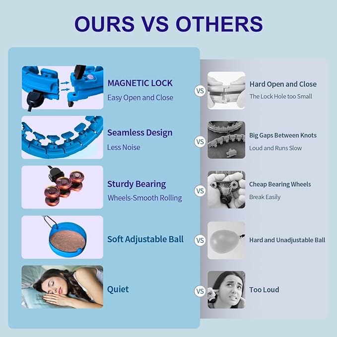 - EXCLUSIVE CUSTOM COLORS, HIGH QUALITY| We have multiple exclusive custom beautiful colors to fit your taste. Our product is the only hoop that has magnetic lock, adjustable weight ball and multiple custom colors. Sturdy, lightweight construction with high-quality ABS plastic.
