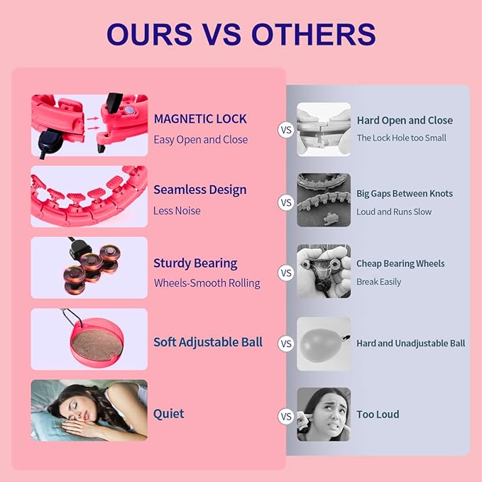 - EXCLUSIVE CUSTOM COLORS, HIGH QUALITY| We have multiple exclusive custom beautiful colors to fit your taste. Our product is the only hoop that has magnetic lock, adjustable weight ball and multiple custom colors. Sturdy, lightweight construction with high-quality ABS plastic.