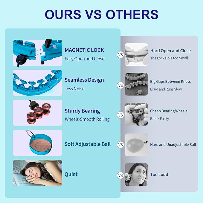 - EXCLUSIVE CUSTOM COLORS, HIGH QUALITY| We have multiple exclusive custom beautiful colors to fit your taste. Our product is the only hoop that has magnetic lock, adjustable weight ball and multiple custom colors. Sturdy, lightweight construction with high-quality ABS plastic.
