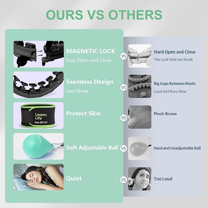 - HIGH QUALITY BLACK HOOP-COLORDUL BALL | The black version hoops have multiple colors ball to fit your taste. Our product has magnetic lock which makes many times improvement. The hoop knots are sturdy, lightweight, seamless construction with high-quality ABS plastic, and quieter and faster to rotate. Free Waist Trimmer to protect your skin.