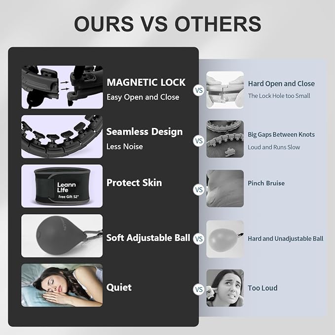 - HIGH QUALITY BLACK HOOP-COLORDUL BALL | The black version hoops have multiple colors ball to fit your taste. Our product has magnetic lock which makes many times improvement. The hoop knots are sturdy, lightweight, seamless construction with high-quality ABS plastic, and quieter and faster to rotate. Free Waist Trimmer to protect your skin.
