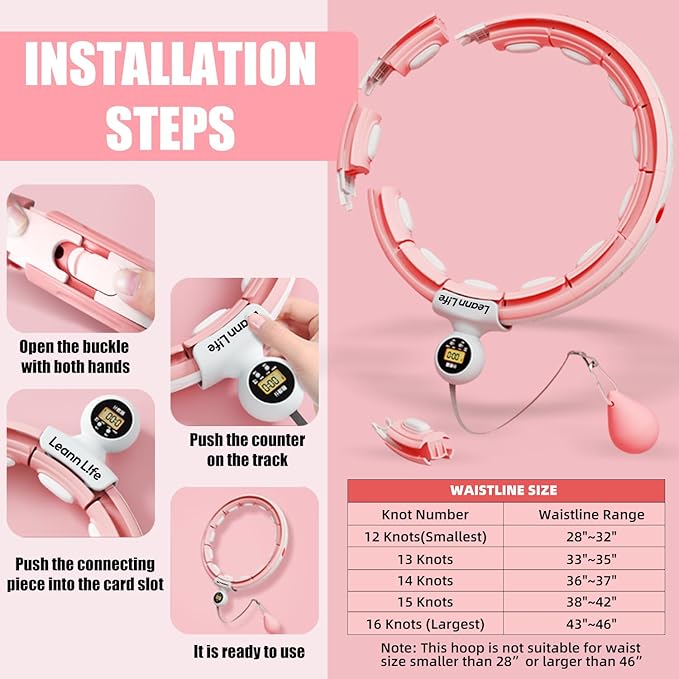 - ✅ 【BOX CONTENTS】: 16 knots hula hoops with 16+2 Spare pieces connecting pieces, smart counter with strap and weighted gravity ball, instruction manual.