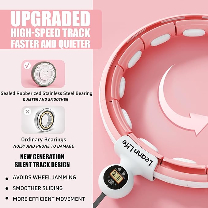 - ✅ 【MOST ADVANCE PREMIUM MATERIAL】: Leann L!fe’s newest and most advanced silent weighted hula hoop which made from premium ABS materials. Premium rubberized wheels instead of hard steel wheels. Gravity Ball made of soft rubber instead of hard plastic. Made this hoop more silent, smooth, and faster.