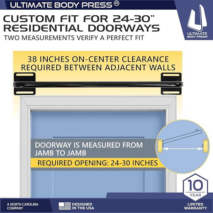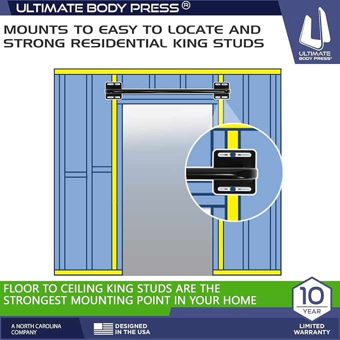 - SHOP WITH CONFIDENCE: Ultimate Body Press is a North Carolina company committed to delivering better workouts every day. The Wall Mount Doorway Pull Up Bars are backed by Ultimate Body Press against manufacturer's defects for 10 years