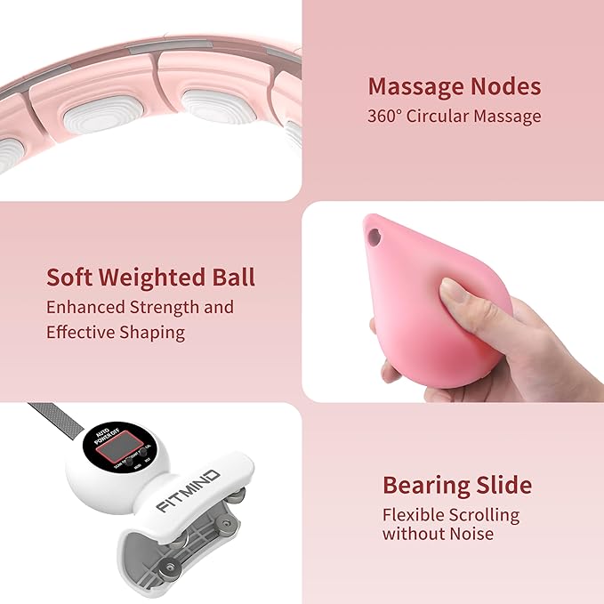 - 【NEW UPGRADED STRUCTURE WITH HIGH QUALITY】Exercise hoops with 364-degree all-round coverage massage head, deep massage muscles, help rapid weight loss, eliminate fatigue; The latest upgraded model of the silent fitness hoops, roller sliding without lagging, significantly reduce the noise, exercise more comfortable; PVC soft rubber material aggravated soft ball, doubling the effect of fat-burning.