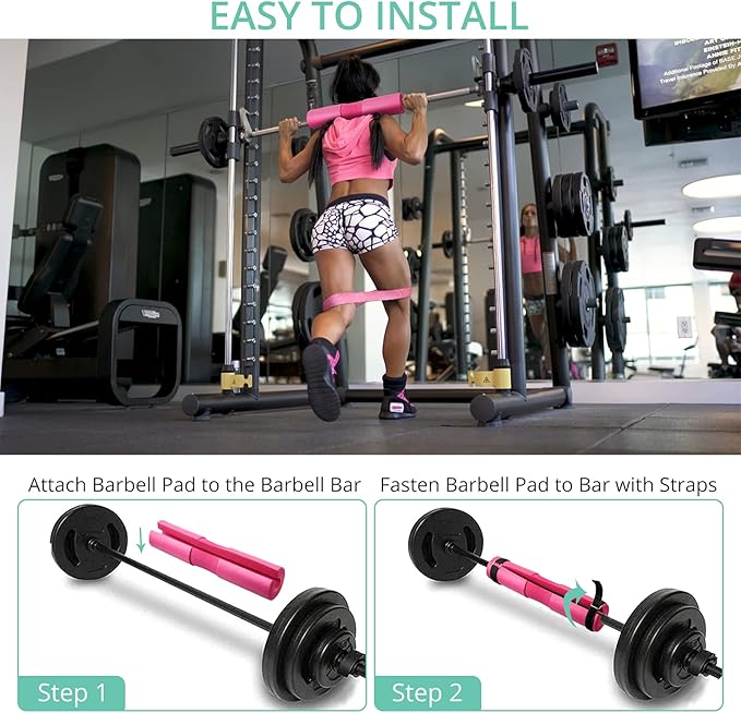 - 【UPGRADED Anti-Slip Fabric and Thickened Rubber Foam】Barbell Pad Fits for 1.0-1.1'' (25-28mm) OLYMPIC BARBELL AND 1.0-1.1'' SMITH MACHINE BAR. Well-constructed by oxford and cotton-ammonia, barbell pad for squats features with effective non-slip surface even with sweat and is easy to be cleaned. 1.3 inches thick high-density rubber foam inside makes it very durable and long-lasting.
