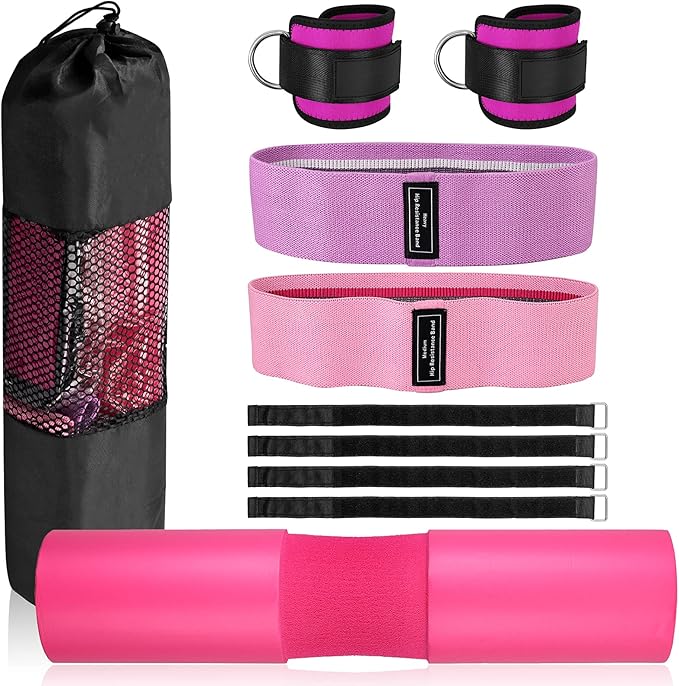- 【Fantastic Barbell Pad Set 】VinTeam Barbell Pad Set includes Barbell Pad for men and women, pair of Gym Ankle Straps that fit any sizes ankles and improve leg strength and hip abductor muscle, elastic & anti-slip Hip Resistance Band that enhances hip lift, leg shaping and body shaping, suitable for P90x, Crossfit, Yoga, Pilate and more. Carry Bag can easy carry all workout accessories to any other place.
