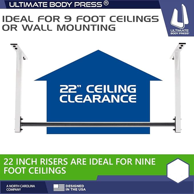 - IDEAL FOR WALL MOUNT OR 9' CEILINGS: Mount to your ceiling to leverage your open floor space, or mount to the wall and still retain incredible range of motion. 48 inch straight bar defines a generous space to build arms, chest, shoulders, back and core.