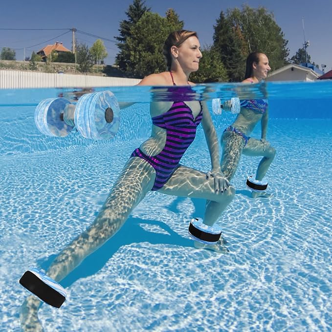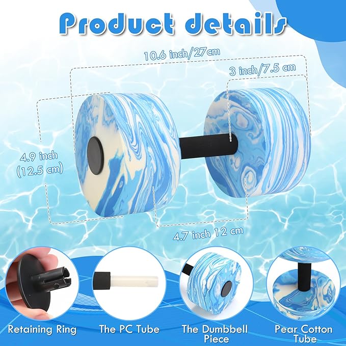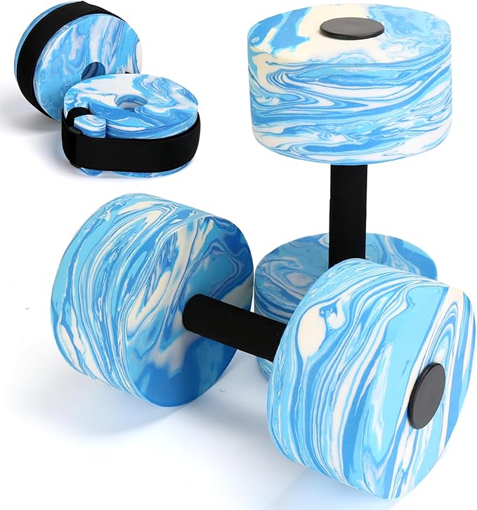 - High-Density EVA-Foam Aquatic Cuffs Dumbbell Set-Made of premium High Density EVA foam, the water dumbbells are chlorine resistant and dry quickly between use. They are long lasting and will not fall apart. It is designed to be durable, ensuring that it will last you a long time and provide you with exceptional performance every time you use it.