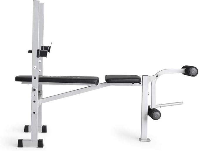 - 3 Bench Positions; Choose between 2 levels of incline, flat, or decline positions to execute a variety of strength-building exercises; Fixed Uprights enhance lifting safety