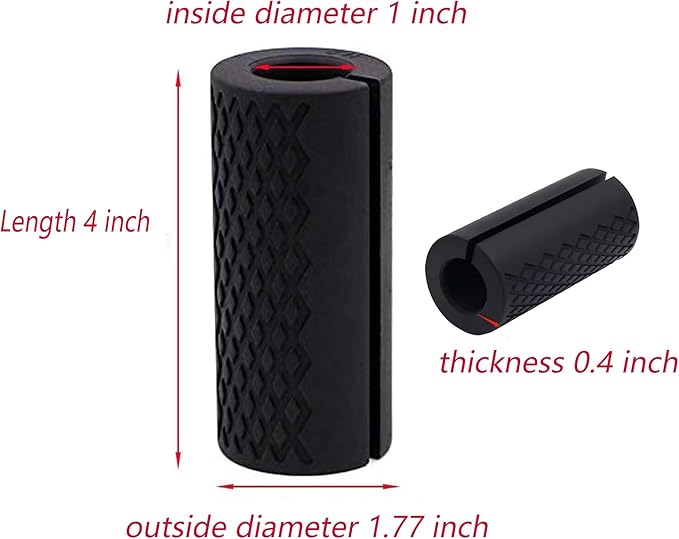 - 【Fits Most Bars】Please check the product size before purchasing.Our barbell grips:Length: 4 inch, outer diameter: 1.77 inch, inner diameter:1.0 inch,thickness:0.4 inch.Our thick bar grips fit virtually all barbells, dumbbell handles, weight bars, pull down ropes, cable machine attachments, and kettlebells. Designed for men and women with large hands, they're perfect for anyone looking to build muscle and strength.