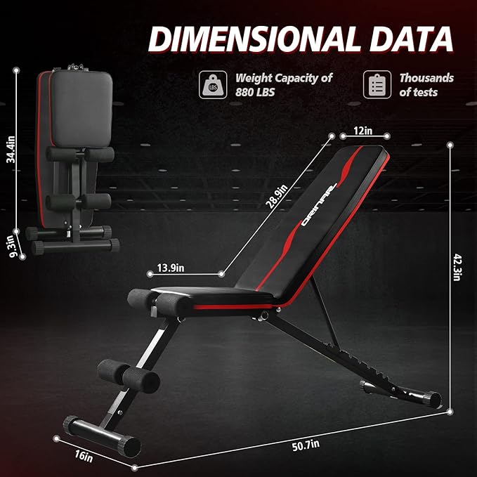 - WEIGHT CAPACITY IS 880 POUNDS - Our weight bench features a unique triangular stability design with high quality heavy - duty steel to ensure your safety while training