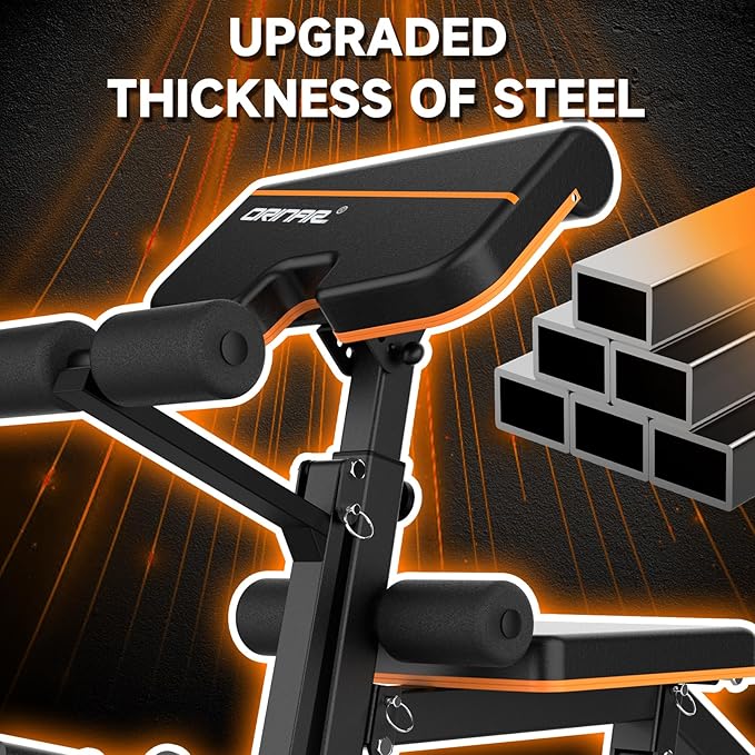 - Strong & Stable Structure: Orinar uses higher quality, thicker steel with more advanced welding techniques to make the weight bench stronger and more stable.Real Weight Capacity: 880 lbs, leg support : 80 lbs.