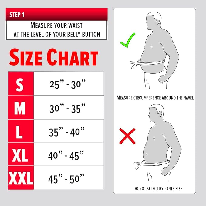 - SIZING CHART: Please refer to the sizing chart in the listing images to order the correct size. Measure your actual waist size using a flexible tape measure, and do NOT base your order on your pants size.