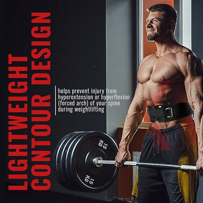 - DESIGNED FOR OPTIMAL COMFORT AND FUNCTION: With its lightweight contoured design, our weightlifting belt helps prevent injury from hyperextension or hyperflexion (forced arch) of your spine during weightlifting. By offering support to your abdominal wall and your lumbar vertebrae, this lifting belt promotes safe lifting technique for Back Squats, Power Cleans, Deadlifts, Clean and Jerks, Overhead Squats and even heavy lifting at work or at home.