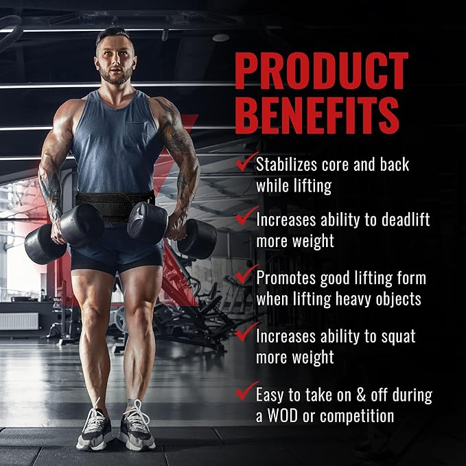 - DESIGNED FOR OPTIMAL COMFORT AND FUNCTION: With its lightweight contoured design, our weightlifting belt helps prevent injury from hyperextension or hyperflexion (forced arch) of your spine during weightlifting. By offering support to your abdominal wall and your lumbar vertebrae, this lifting belt promotes safe lifting technique for Back Squats, Power Cleans, Deadlifts, Clean and Jerks, Overhead Squats and even heavy lifting at work or at home.