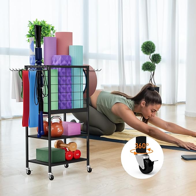 - Quick Assembly: Our yoga mat holder with wheels design takes into account user convenience, with all accessories labeled clearly and accompanied by detailed installation guidelines, allowing you to quickly complete the assembly. After completion, it not only enhances the aesthetics of your fitness space, but also increases its practicality.
