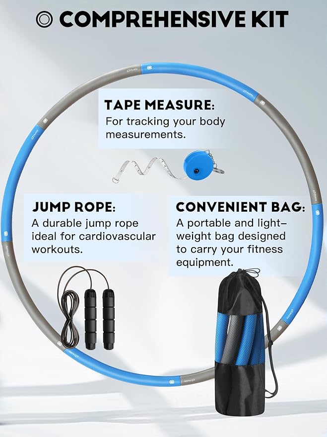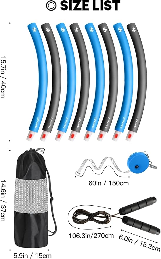 - Comprehensive Fitness Kit: This fitness set includes not only the adjustable 8-section waist hoop for weight loss but also a jump rope, tape measurer, and a convenient storage bag. Everything you need for a complete workout routine is included, providing versatility and convenience
