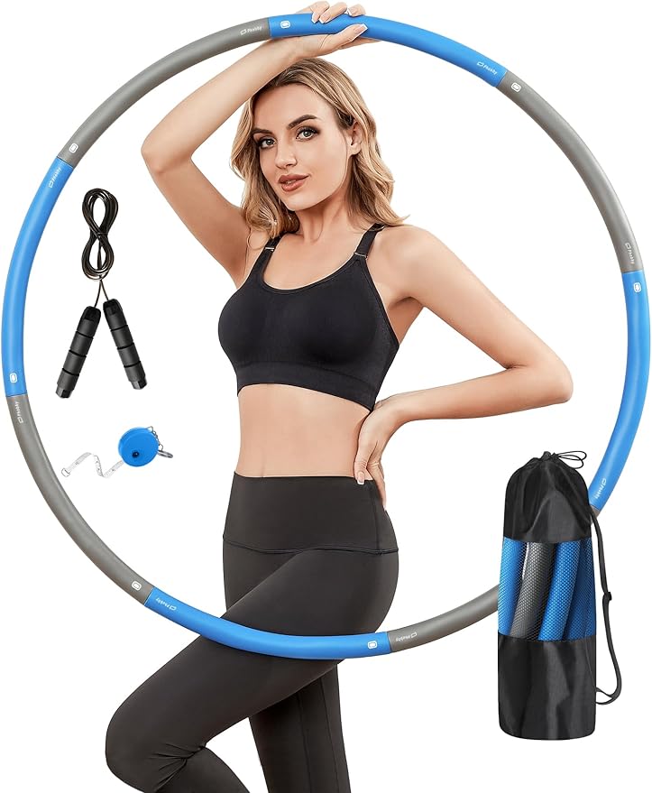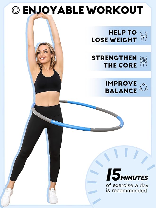 - Personalized Fit: The Phobby weighted hoop consists of 8 sections, allowing customization to fit your body perfectly. Weighing approximately 2.2 lbs and measuring around 38 inches wide, you can easily remove 1 or 2 sections to achieve a smaller hoop diameter tailored to your needs