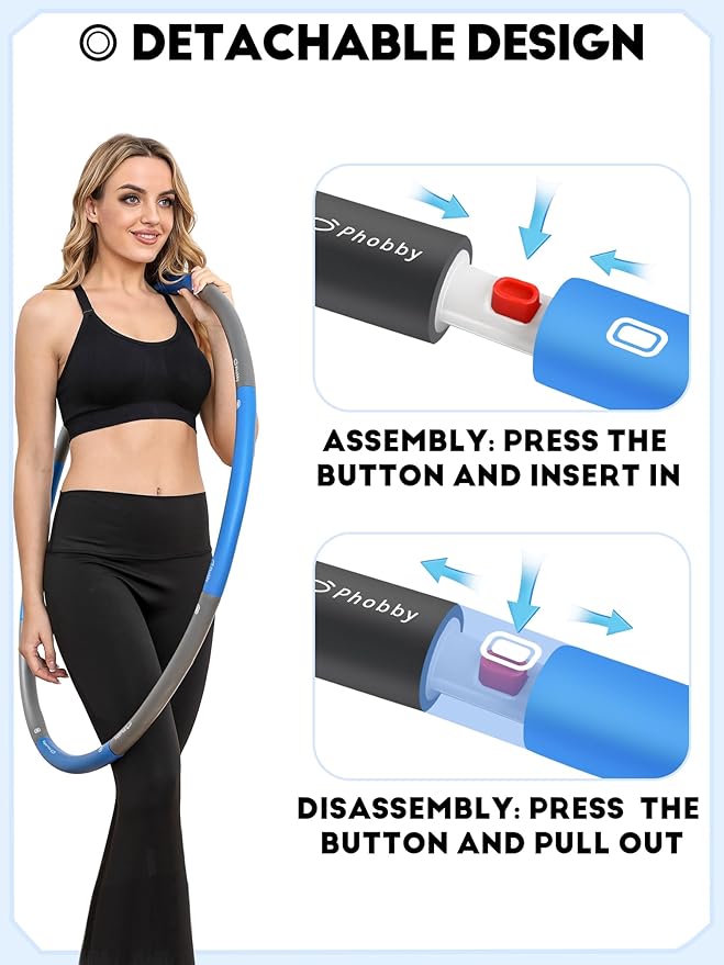 - Convenient Detachable Design: The Phobby weighted exercise hoop is easily detachable and simple to assemble, making it highly portable. Store it in the included carry bag and take your fitness hoop wherever you go, whether it's at home, the gym, outdoors, or even on vacation
