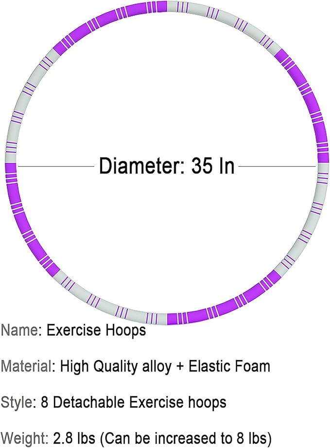 - ★【Adjustable Weight】Our Fitness hoops about 2.8 pounds and diameter 35 inches. The weight of this exercise hoop can be adjusted freely. Weighted objects such as rice grains,sand, small balls,etc.Can be added inside the steel pipe,and the upper weight of the weight is determined by the load.