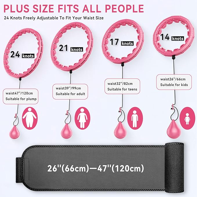- 【Infinity Fitness Hoop】Our fitness hoop consists of 24 detachable knots,For all sizes between 30 inches (14 links) and 47 inches (24 links),infinity hoop plus size which can be adjusted easily according to your waistline.