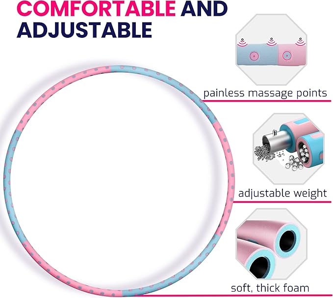 - Quality hula hoop that works for you means no more sepnding extra money replacing plastic adult hula hoops with thin foam rubber full of cracks after 10 minutes of use! No more awful, painful bruises around the waist thanks to poor quality plastic not weighted hoop for adults which weight just under 1 kg! No more struggling while excercising with hula hoop weighted at home. We designed to fit nearly everybody, weighted hola-hoop - that will last for years with your fitness home equipment.