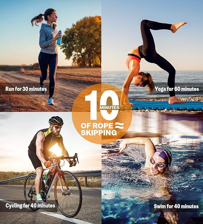 - 💪【Better Results In Less Time】Exercise test shows that 10 minutes of jumping with this jump rope is equivalent to 30 minutes of running.Heavy jump rope is 10 times more effective than ordinary skipping rope for building your core. As far as the amount of exercise is concerned, one jump with this rope is equivalent to 10 jumps with an ordinary skipping rope, helping you build strength in a short time heavy jump rope workout.