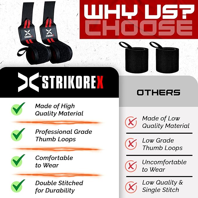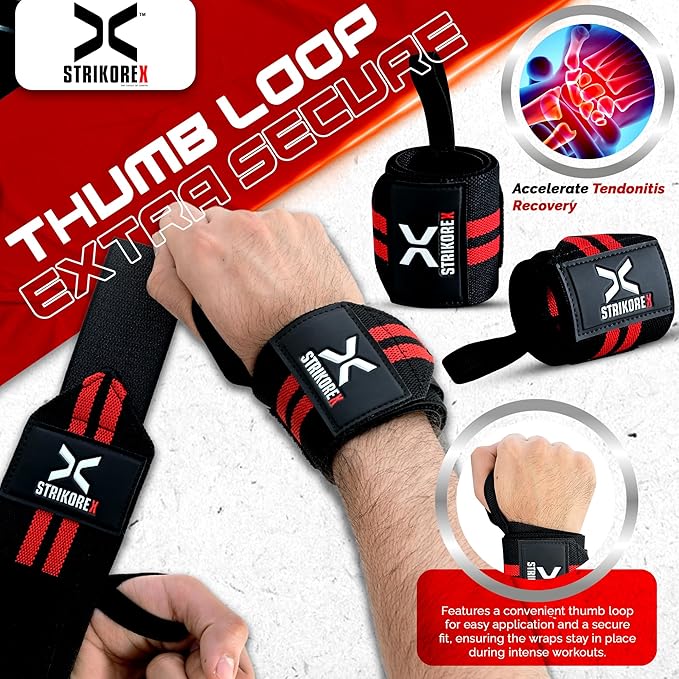 - [REFINED STABILITY] -StrikoreX 18" Wrist Wraps are not just fitness accessories ,also these are your quiet confidants in working out. These wraps cradle your wrists in support, granting you the freedom to exceed your limits with exercises like bench pressing, shoulder pressing, overhead lifting and dips.