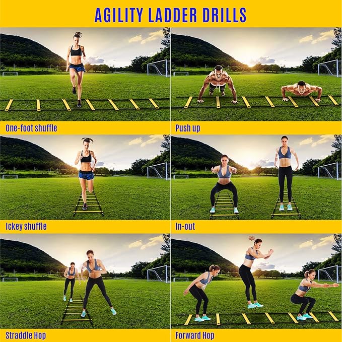 - BOOST FOOTWORK FOR VARIOUS TRAINING LEVEL: Exercise ladder is designed with 8, 12, and 20 rungs; Rung-to-rung distance can be adjusted up to 15 inches, making soccer equipment suitable for different skill sets levels; Instruction is included