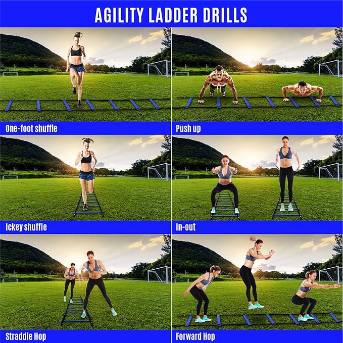 - BUILDING UP SPEED FOR ANY SPORT: Agility ladder and hurdles are great for a variety of sports, improving coordination, agility, great warm up exercises tool for soccer, football, basketball, tennis, and physical therapy
