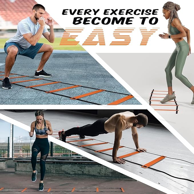 - DURABLE FOR LONG TERM USE: Fitness agility ladder features a durable nylon construction and sturdy plastic rungs, making football ladder lay well, perfect for a variety of agility training exercises