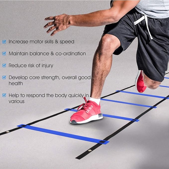 - DURABLE FOR LONG TERM USE: Fitness agility ladder features a durable nylon construction and sturdy plastic rungs, making football ladder lay well, perfect for a variety of agility training exercises