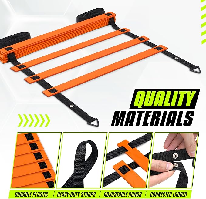 - DURABLE FOR LONG TERM USE: Fitness agility ladder features a durable nylon construction and sturdy plastic rungs, making football ladder lay well, perfect for a variety of agility training exercises