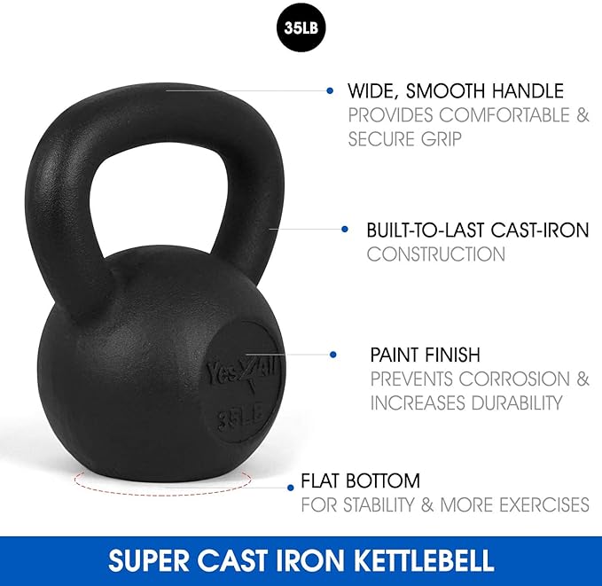 - 35 POUNDS SOLID CAST IRON HEAVY KETTLEBELL: Crafted for longevity, strength training kettlebells showcase a sturdy solid cast iron construction without welds, weak spots or seam, offering consistently high performance through fitness journey