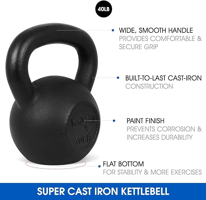- 40 POUNDS SOLID CAST IRON HEAVY KETTLEBELL: Crafted for longevity, strength training kettlebells showcase a sturdy solid cast iron construction without welds, weak spots or seam, offering consistently high performance through fitness journey