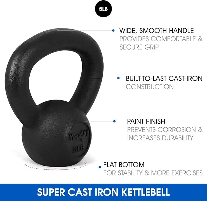 - 5 LBS HIGH-QUALITY SOLID CAST IRON KETTLEBELL: Built to last - constructed of solid cast iron with no welds, weak spots, or seams