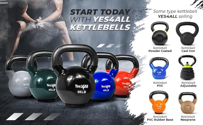 - ADDED RUBBER BASE: Yes4All 5 lbs - 50 lbs Kettlebell weight was made with cast iron in bottom of solid provides flat sturdy base for your training exercise and efficient workout. This allow a basics storage, ensures stability and protects the floor when you put down.