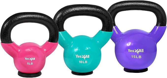 - HIGH QUALITY CONSTRUCTION: Vinyl coated kettlebell set made of cast iron for maximizing durability of the product, that protects floors, reduces noise, and prevents corrosion. No welds, weak spots, or seams.