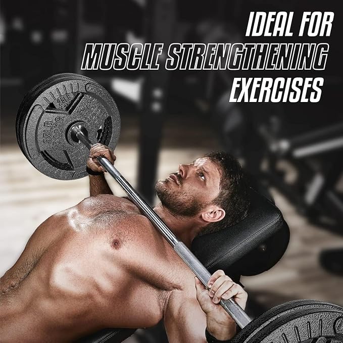 - BUILT TO LAST: Olympic weight plates crafted from high-quality cast iron are designed for durability and long-term use, ensuring they can withstand intense workouts without cracking or breaking