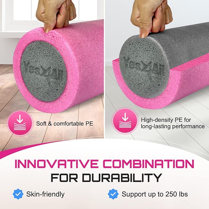 - MATERIAL INNOVATION: Yes4All high density foam roller is an ideal combination of two layers (foam roller Soft PE and High Density PE); Thus, it brings the benefits of PE material and has a long lifespan without breaking or deforming easily