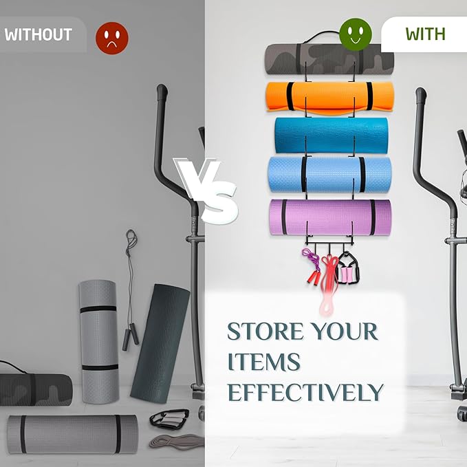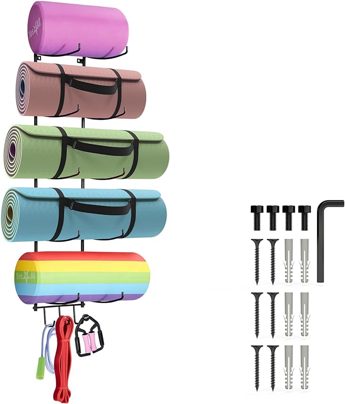- [Home Gym Organizer] Yes4All's Roller holder offers you an efficient way to store your exercise and yoga mat, foam rollers, workout bands and more at your fingertips.
